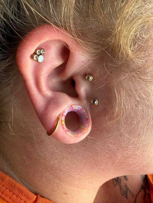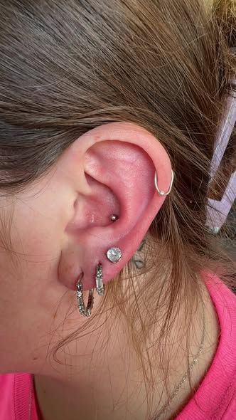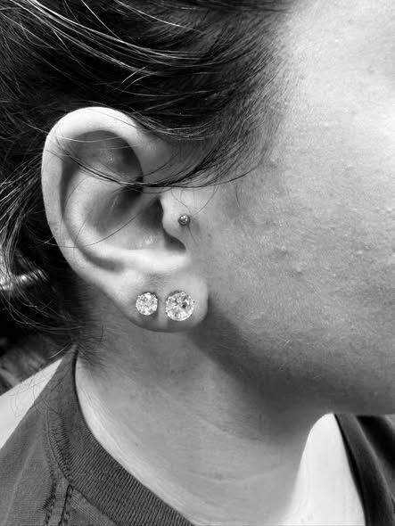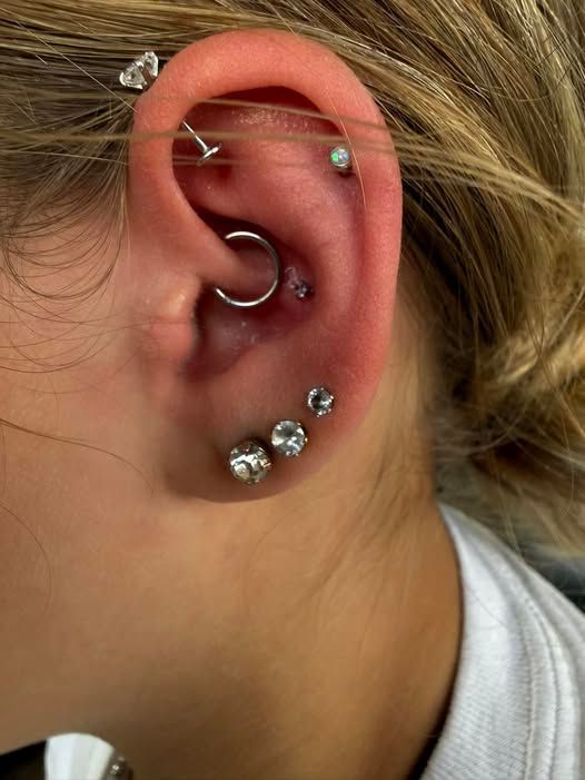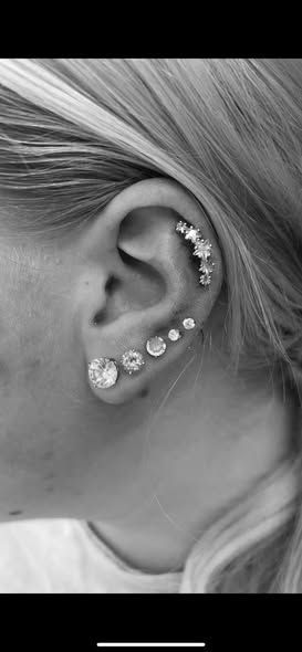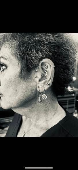 - Ear Piercings (lobe, conch, multiple stacked styles)